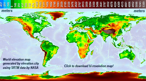 World elevation map